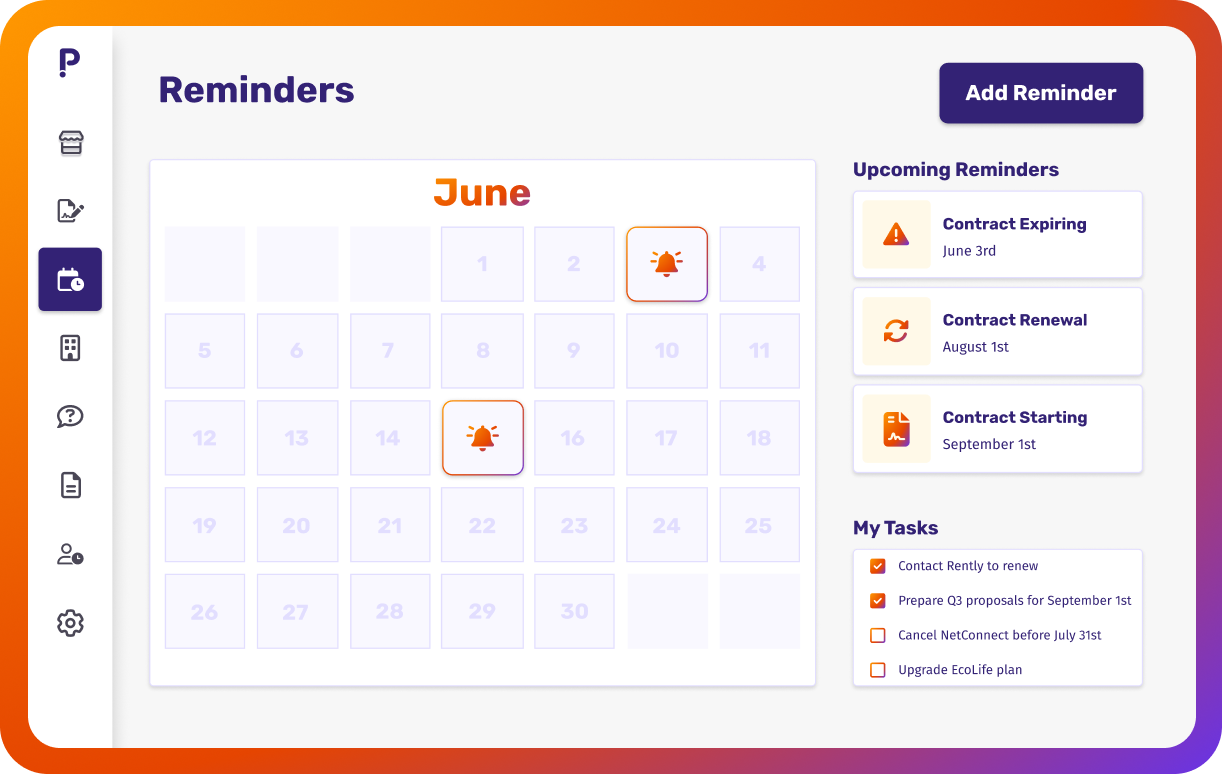 Customize reminders for your vendors, contracts, or properties to effortlessly stay on top of deadlines.